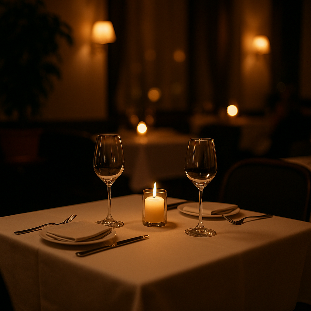 • Reserved table at a fine dining restaurant with a romantic atmosphere